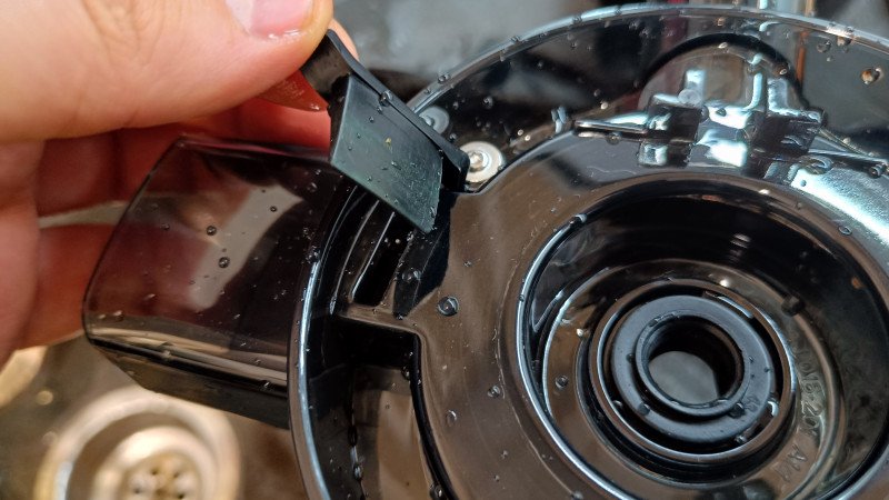 Бункер отстегивается, но при этом придется приложить некоторое усилие, так как есть уплотнители.