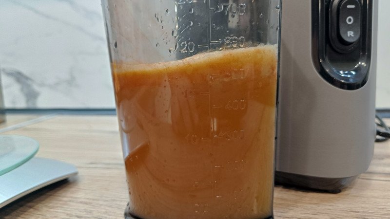 Запускаем отжим и на выходе 232 г жмыха и более 500 мл натурального сока.