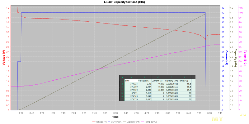 тоже почти соответствует заявленному. Батарея нагрелась до 66 °C, что немного превышает рабочий максимум в 60° для Li-Ion.