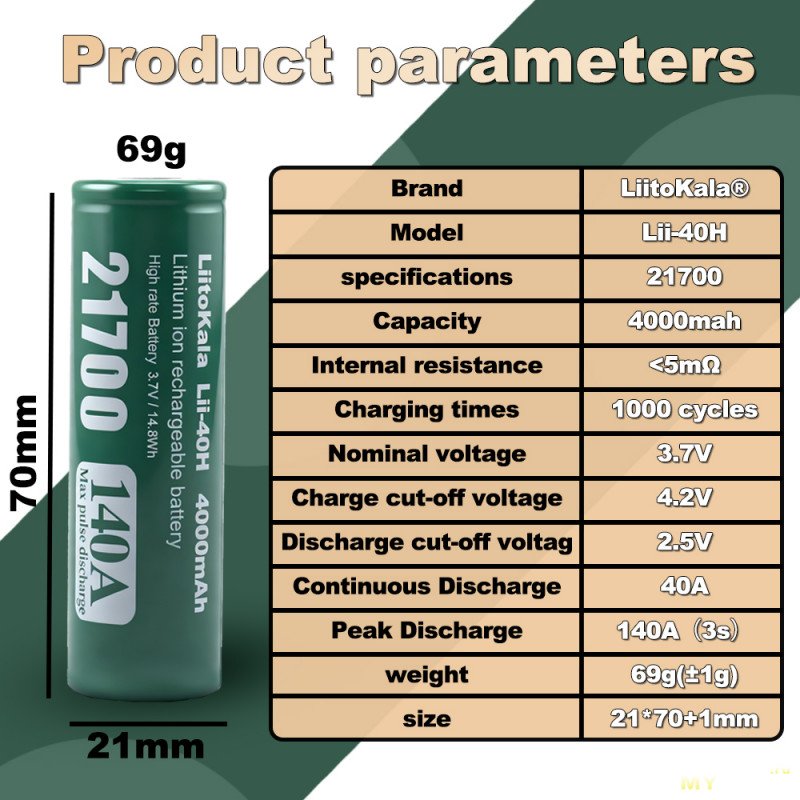 Liitokala 21700 Lii-40H испытание током 80А.