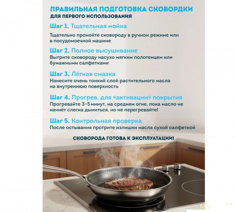 Так почему информация, из-за которой многие разочаровываются таких сковородах, запрятана так далеко? Ее нет ни в бумажном руководстве, ни на страничке в казахстанском магазине.
