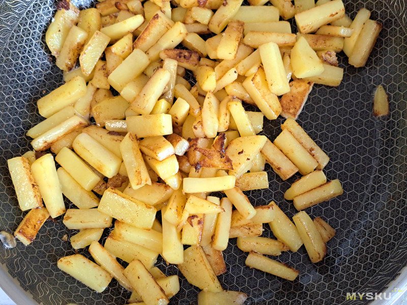 Ну и финальное испытание — как работает способ с достаточным разогревом. Снова жарим картошку.
