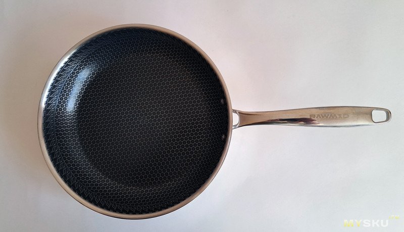Глянул пару видеообзоров сковороды Rawmid RAP-01 от милой девушки. Там был только один полезный для меня момент: «перед готовкой прогрейте сковороду, чтобы вода каталась шариками».