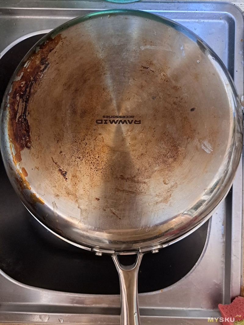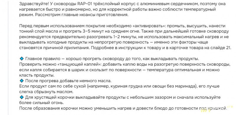 При подготовке к обзору зашел на Озон, и в вопросах и ответах увидел жалобу на пригорающие продукты и ответ от Rawmid.