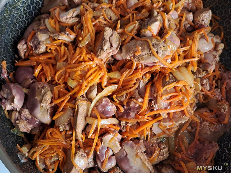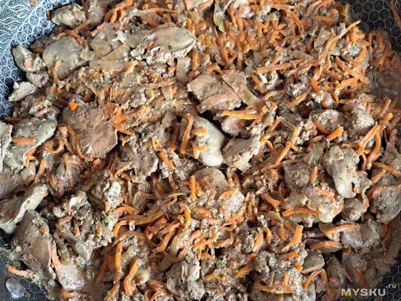 И промытую, очищенную от лишнего, и порезанную на кусочки куриную печень.