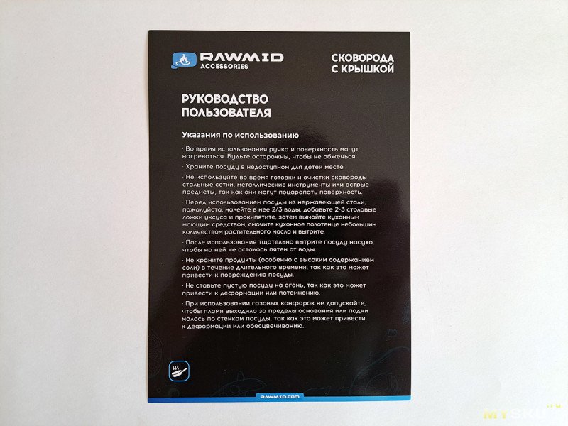 Давайте подводить итог. Сковорода качественная, удобная, и скорее всего, прослужит долго. Но к особенностям антипригарного покрытия надо приспосабливаться. И жаль, что Rawmid не обращает внимание пользователя на это явным образом. Можно было бы про подготовку сковороды и правила пользования, написать в бумажной инструкции. А также, на странице магазина в более заметном месте. Тогда пользователь бы сразу начинал готовить с удовольствием, а не задавался вопросами, что не так.