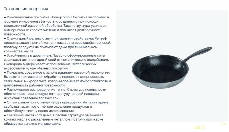 Начал искать на Ютубе ролики про покрытие Honeycomb. Интересно, кучу раз видел сотовые сковородки в видеорецептах, а информации очень мало.