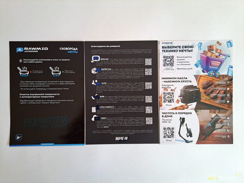 В комплекте руководство пользователя на одной страничке и пара буклетиков от Rawmid.