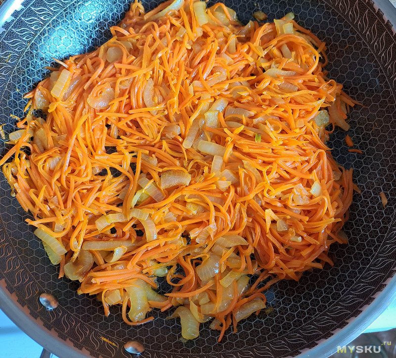 Делаем зажарку для борща. Кстати, в данном случае удобно, что сковорода такая вместительная.