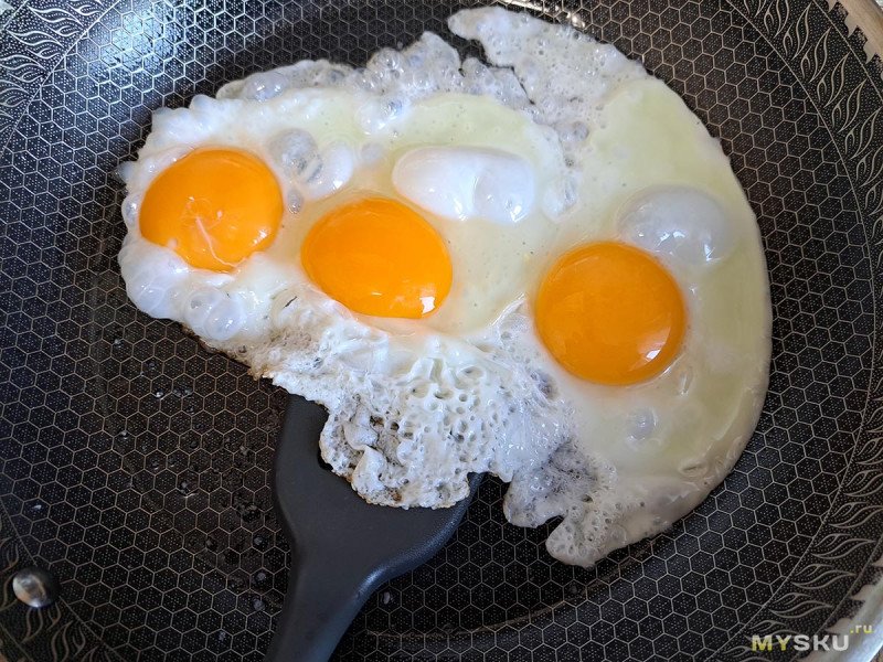 Проверяем новую информацию. Яичница совершенно не липнет.