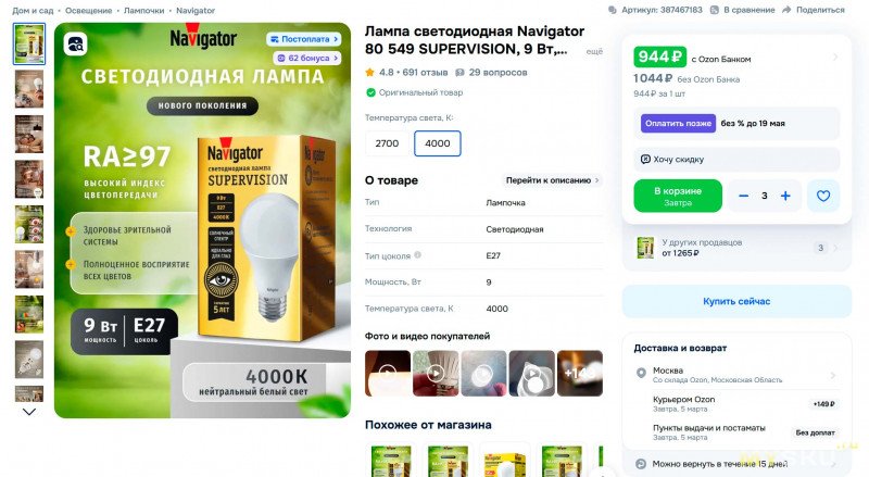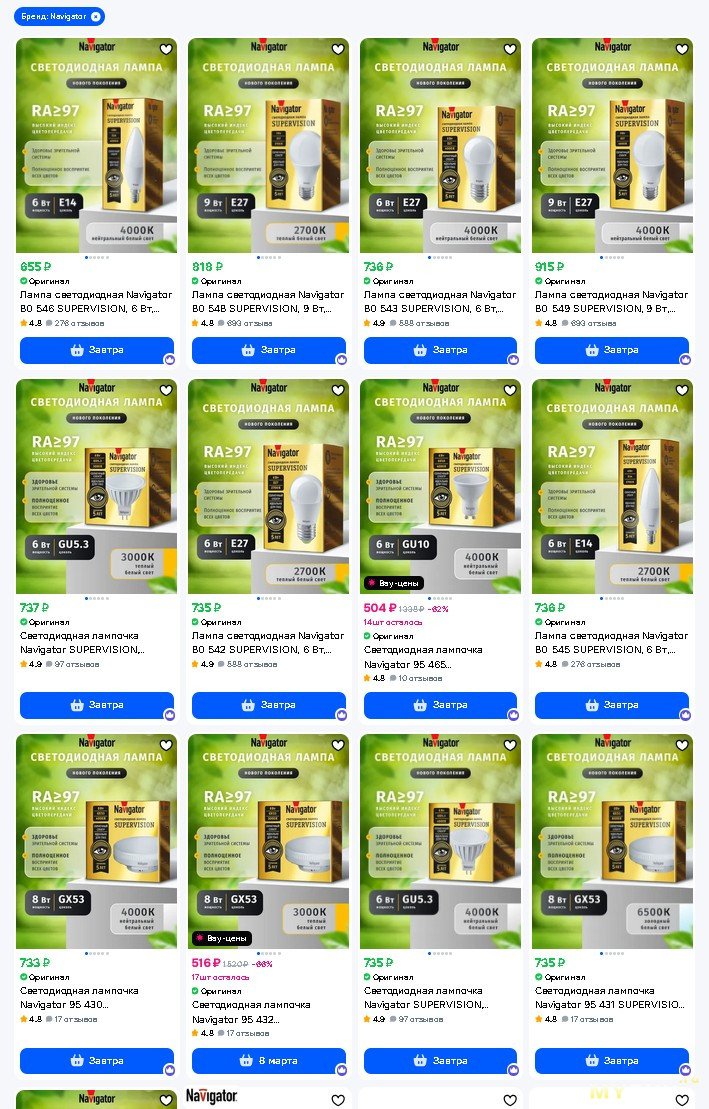 В продаже появились светодиодные лампы Navigator с высоким индексом цветопередачи, причём это не дорогие лампы премиальной серии, а обычные лампы массмаркета.
