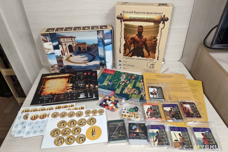 «Чемпион Рима» – семейная настолка с разнообразными механиками и рпг-элементами, простыми правилами и классной атмосферой. Игра неконфликтная, легко осваивается и не заставляет чересчур напрягать мозги, выстраивая многоходовые стратегии. Главное, что она увлекательная и затягивающая. Качество компонентов хорошее – приятно как тактильно взаимодействовать с компонентами, так и рассматривать картинки. Однако стоит учитывать, что правила придется скачивать отдельно – коробочные только запутают. «Чемпион Рима» подойдет тем, кому нравятся спокойные не хардкорные настолки и эстетика Древнего Рима.