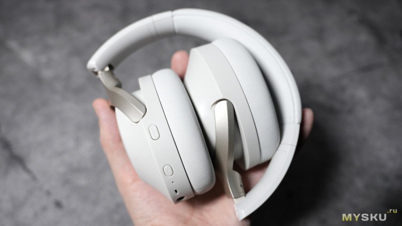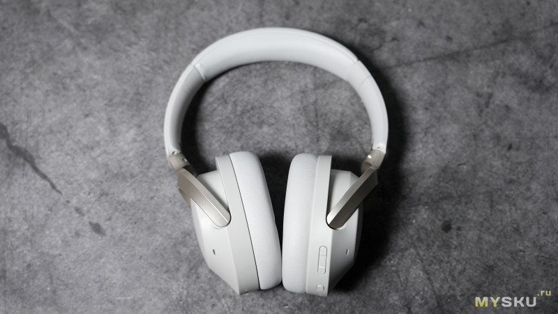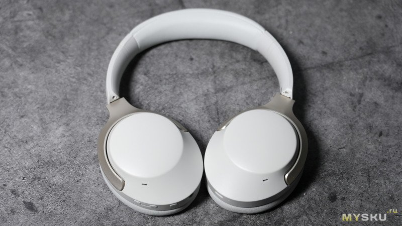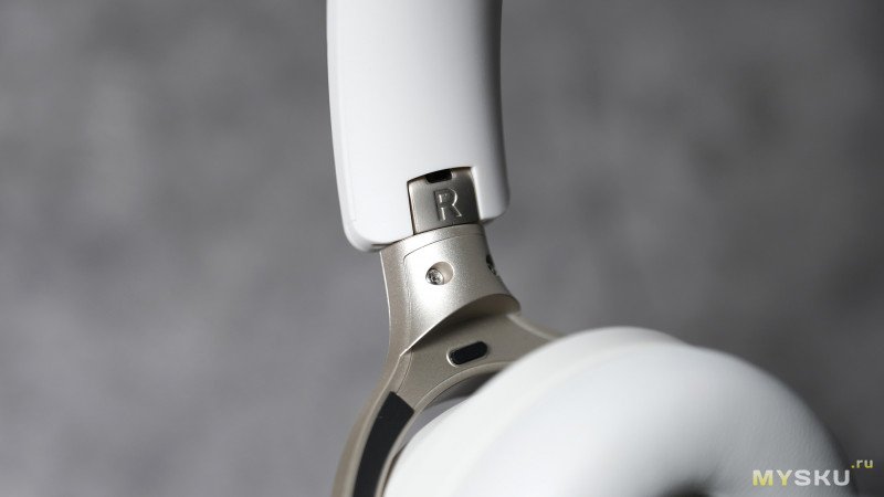 С наружной стороны чаш с нижней стороны размещены отверстия микрофонов для работы системы активного шумоподавления. Присутствуют логотипы бренда и технологии на внешней стороне пластиковых частей, но они чаще всего незаметны, от чего издалека можно не сразу понять, чьего бренда эти наушники.