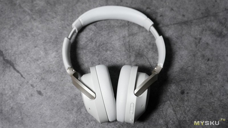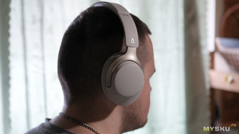 По комфорту ношения вопросов не возникло, наушники удобно носить и спустя час прослушивания, но кожзам, из которого сделано покрытие амбушюр, — материал не дышащий и уши будут потеть. Чаши достаточно плотно примыкают к ушам, что даёт неплохую пассивную шумоизоляцию. Активное же шумоподавление отрабатывает качественно, речь людей, посторонние звуки, шумы вентиляторов или автомобилей — отсекаются хорошо. Предположу, что и в метро можно можно будет с комфортом прослушивать музыку. Не совсем понятна разница между дефолтным ANC и адаптивным в обычных условиях, создалось впечатление, что звуки глушат одинаково. Чтобы наоборот — не терять акустической связи с внешним миром, есть режим прозрачности, который работает как надо, несмотря на плотное прилегание амбушюр к ушам.