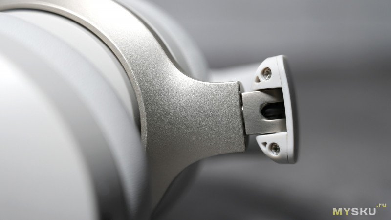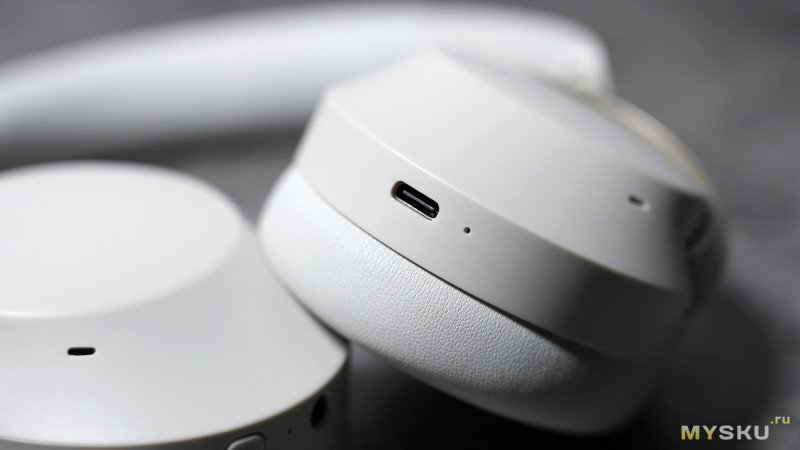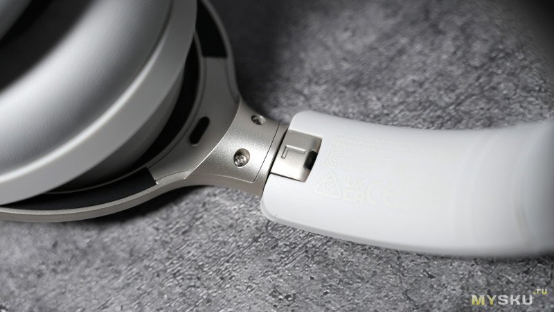 На второй чаше находится зарядный USB-C разъём с LED-индикатором. Внутри установлен аккумулятор ёмкостью 500мАч с заявленной автономностью до 70 ч на средней громкости без шумоподавления.