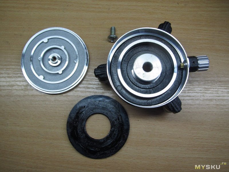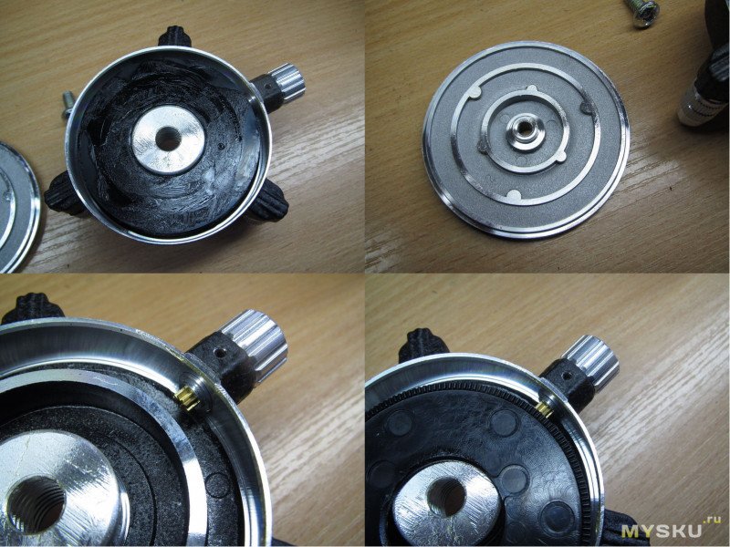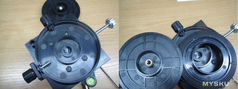 Есть интересный нюанс: отсутствие жесткой непосредственной связи между шестернёй и верхним диском к которому и прикручивается сам нивелир. Но на трении и смазке работает как-то.