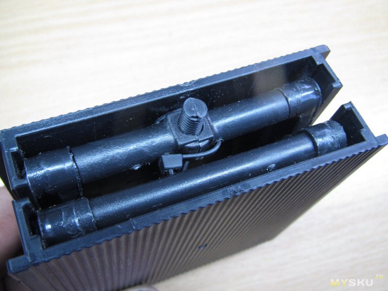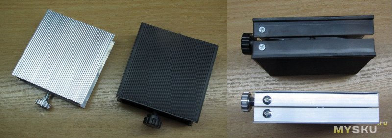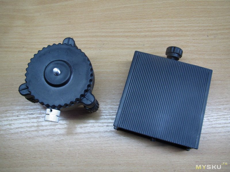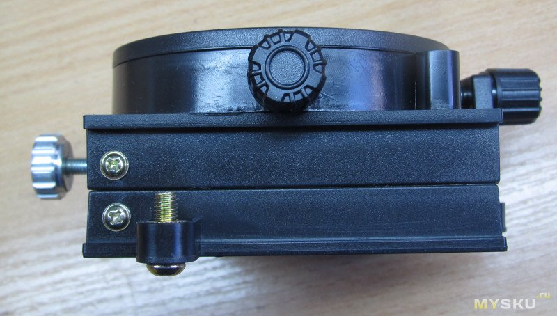 Прибамбас номер два — поворотный держатель. Он уже подороже, АЖ ЦЕЛЫХ 11BYN (почти $4), но качество изготовления — моё почтение. Он практически целиком из алюминия. Внутри пластиковая шестерня, ну и винты стальные. Всё остальное — алюминий, там где черное — крашеный алюминий.