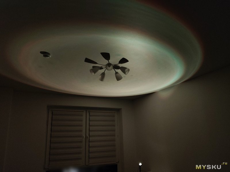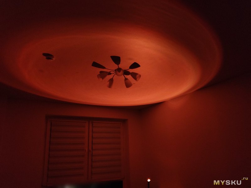 И собственно освещение помещения… На чём подробнее надо остановиться — светодиод откровенно слабенький, днём светильник почти бесполезен. А вот ночью да, яркости не то что бы хватает, но она на пределе терпимости, ещё чуть меньше и был бы провал (на фото со смарта чуточку ярче смотрится, чем «на самом деле»):