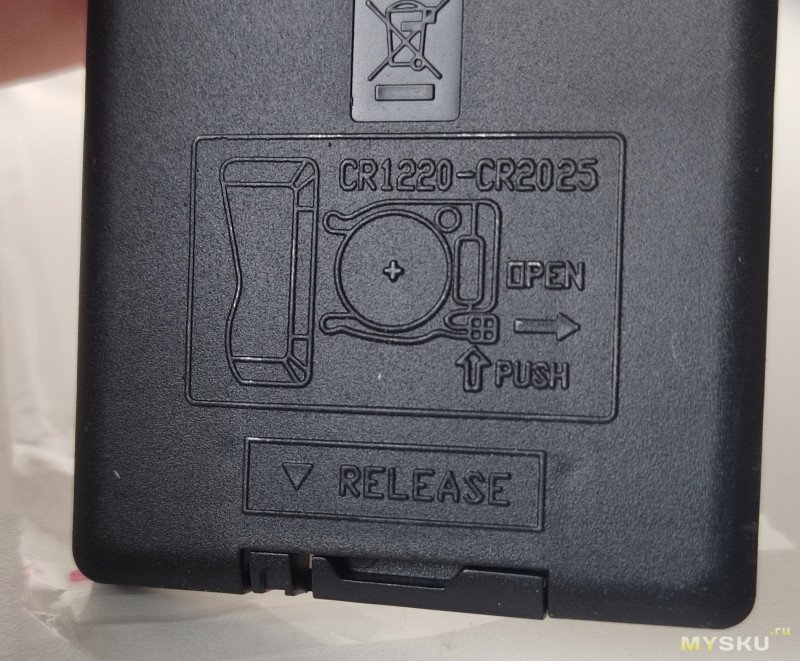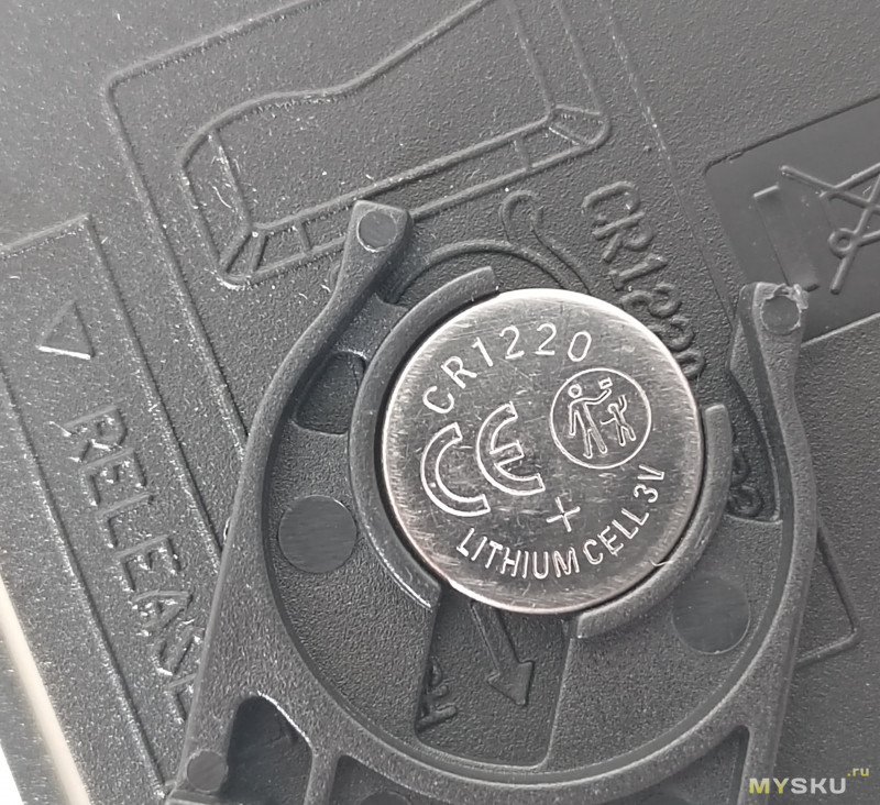 Перед первым включением надо ещё прозрачную плёнку-предохранитель выдернуть из щели, она внутри контакт размыкает, который на батарейку налегает: