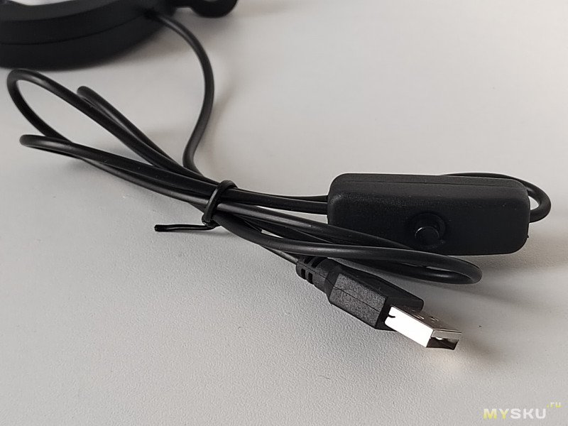 Питание USB 5V. Можно от зарядного устройства либо пауербанка (работает штатно, яркость не теряется). Проверить потребление не вышло, при подключении через USB тестер — светильник не включается.