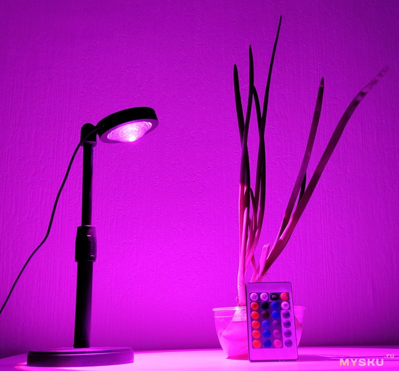 Из любопытства полез фуксию врубать — под руку что попалось, то и поставил под свет с оттенком «фито-лампы»: