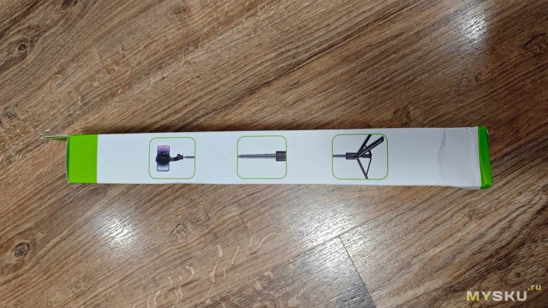 Поставляется штатив в вытянутой коробке из тонкого картона с цветным оформлением и демонстрацией режимов работы гаджета.