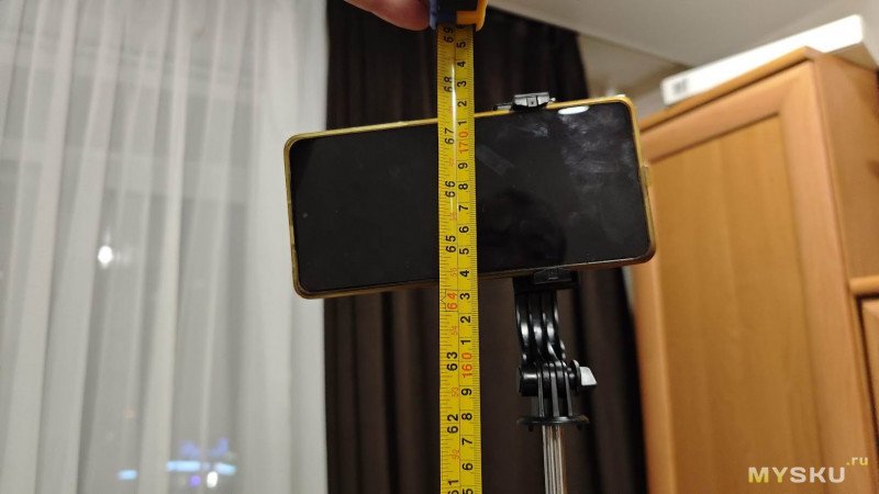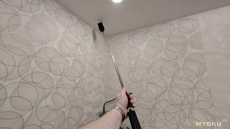 Однако не у всякой селфи-палки длина рычага составляет 170 см. Мне даже пришлось упереть её в натяжной потолок и переключить камеру на широкоугольный объектив, чтобы она вся вошла в кадр.
