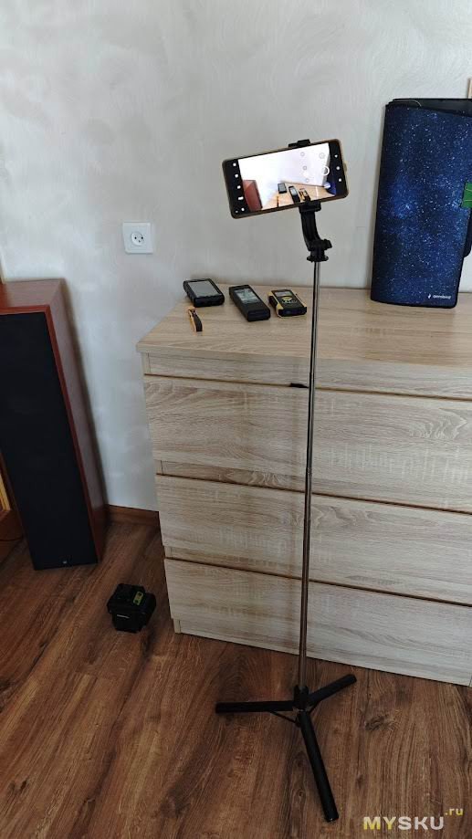 Как селфи-палкой я данным гаджетом не пользовался, да и не моё это, а вот как штатив недавно использовал для съёмки видеоматериалов к обзору FNIRSI WD-02.