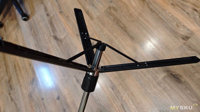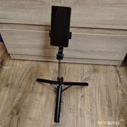 Тут вообще всё просто — достаточно вытянуть последнее колено, как рукоятка селфи-палки превращается в треногу. Вообще секундное дело.
