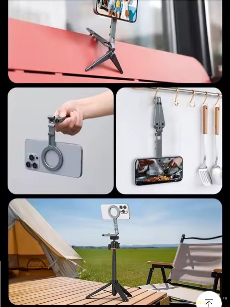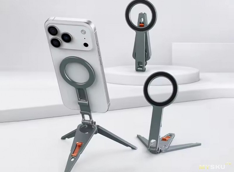 Но очень удобным оказалось решение маленький штатив/поставка с magsafe ring, которую можно накрутить на селфипалку с винтом 3/4