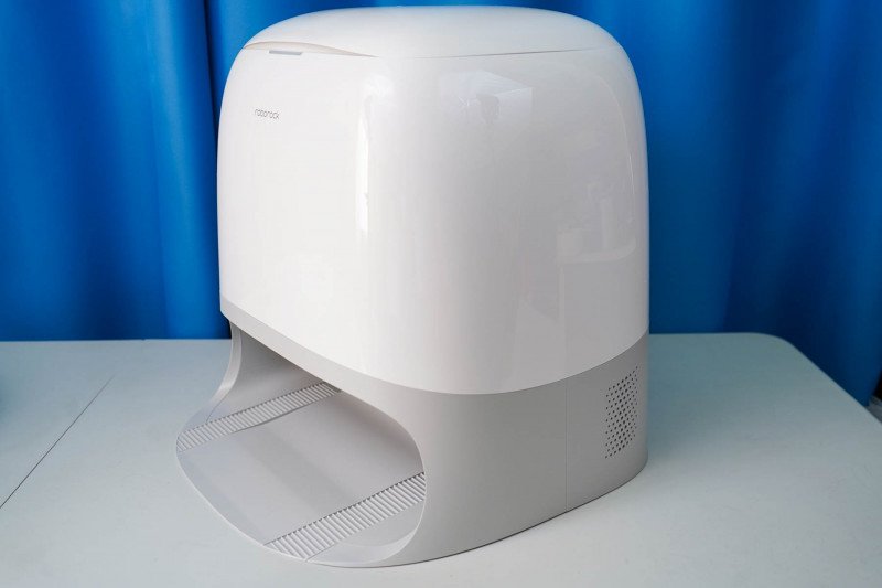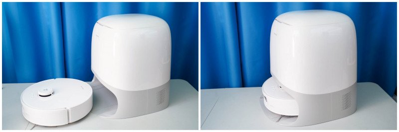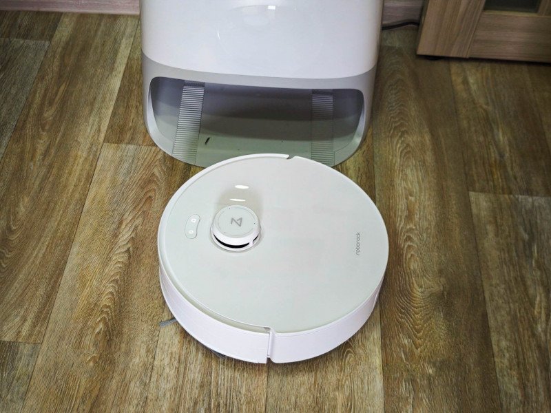 Станция сделана примерно таким же образом, как и у предыдущей модели Roborock Qrevo в линейке. Отличие — она имеет подиум чуть выше, для удаления мусора из робота через низ, а также для более качественной мойки ролика. Сама станция довольно продвинутая — с горячей сушкой/горячей мойкой. Размеры станции в меру компактные 45 х 45х 45 см.