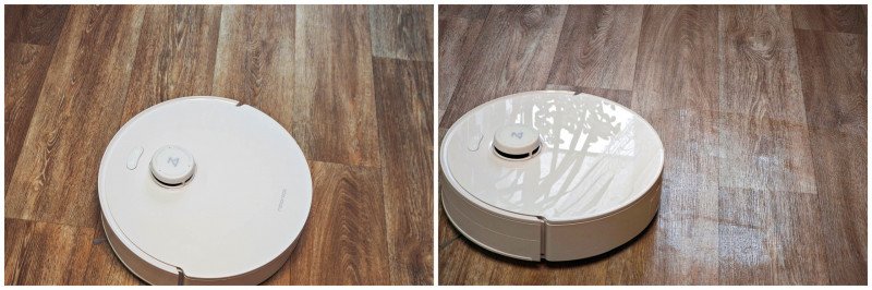 Из-за сложного механизма с роликом внутри и сбором воды внутрь корпус робота выглядит массивным. Тем не менее, размеры такие: диаметр 35.3 см, высота корпуса 11.9 см. У меня робот в белом матовом цвете — универсальный выбор, который подойдет практически для любого дизайна.