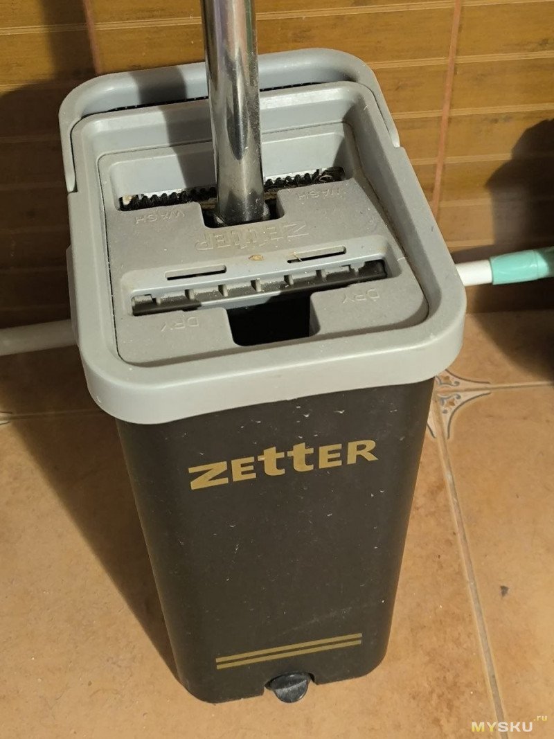 При этом постоянно отжимается и грязная вода постоянно собирается, а ролик смачивается чистой водой.