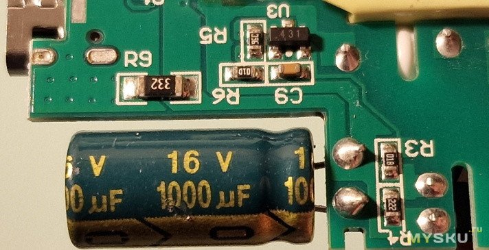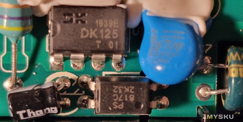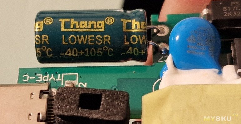 В остальном, можно сказать, стандартно — TL431, PS817C, Y-конденсатор, на входе SMD предохранитель, синфазного дросселя нет. Провода с вилки силиконовые. В целом очень всё аккуратно.
