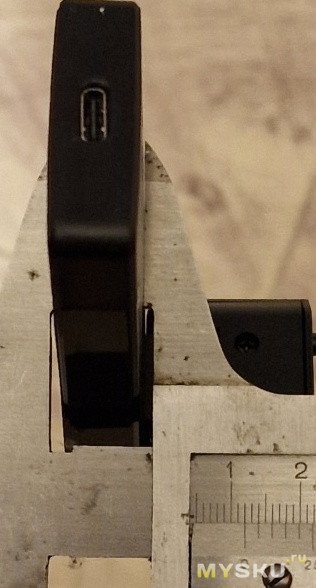 Толщина без учёта вилки 12мм., без учёта штырей 39мм., полная 58мм., со сложенной вилкой 26мм.