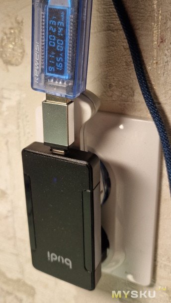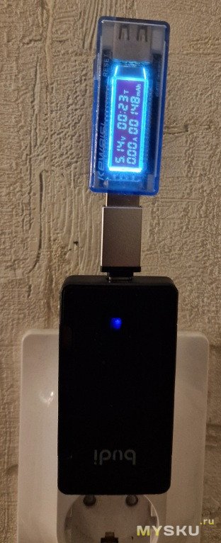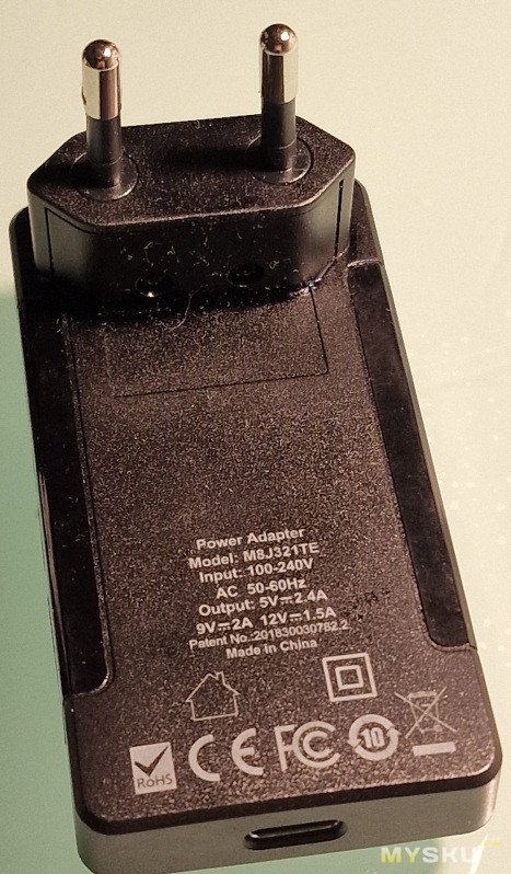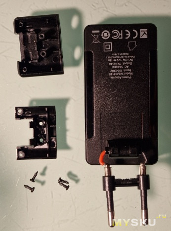 В остальном, можно сказать, стандартно — TL431, PS817C, Y-конденсатор, на входе SMD предохранитель, синфазного дросселя нет. Провода с вилки силиконовые. В целом очень всё аккуратно.Подрезал вилку и приклеил на поксипол, больше она не складная.