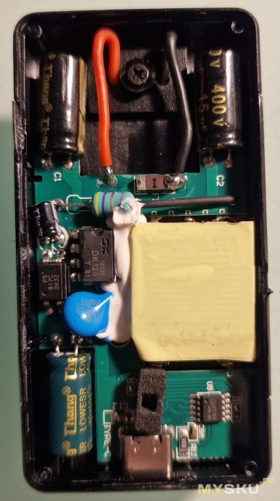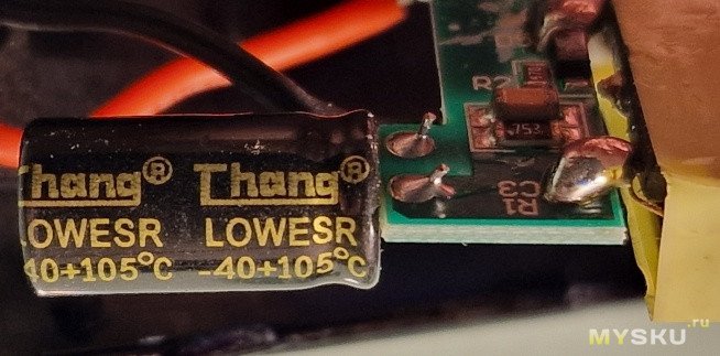 Конденсаторы в первичке 2 штуки по 15мкФ 400В, выходной 1000мкФ 16В некий Thang LOWESR -40+105°С
