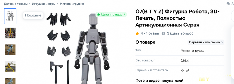 "O7(B T Y Z) Фигурка Робота, 3D-Печать, Полностью Артикуляционная Серая". Колени отваливаются, суставы скользят...