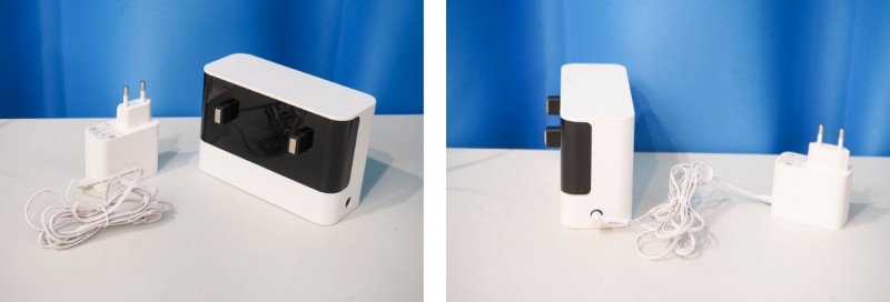 Станция достаточно компактная, невысокая, выполнена в таком же цвете, что и сам робот. Робот примерно запоминает расположение станции, а когда находит — «целится» на станции уже по этому передатчику.