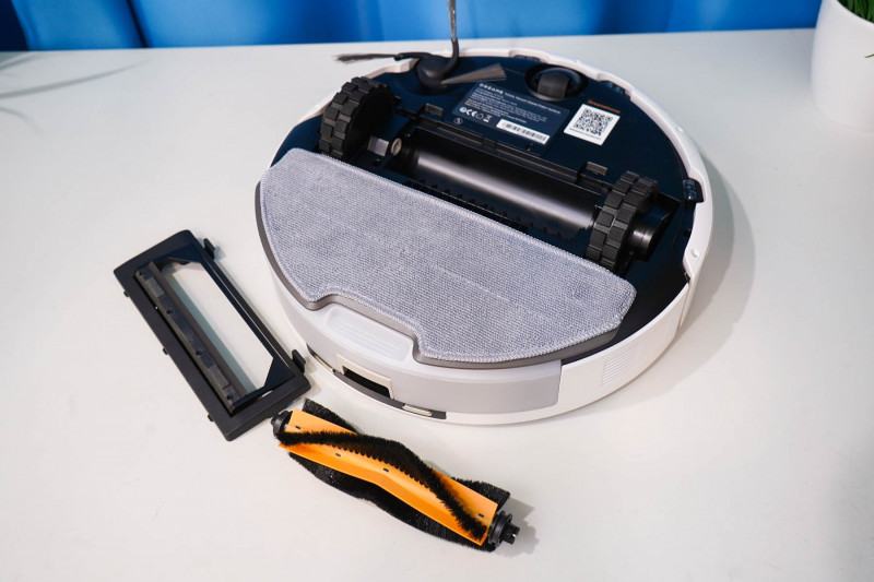 Также потребуется установить боковую щетку на место — при транспортировке она снята с робота. Потребуется также и базовое обслуживание — налить воды перед уборкой, установить салфетку. Салфетка крепится на велкро-липучке. После уборки — снять салфетку (и постирать).