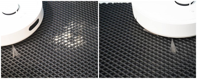 Робот оправдывает свою высокую мощность — удаляет мелкодисперсную пыль из глубины ворса. Понравилось, что без проблем может проводить уборку под кроватью и тумбочками и прочей мебелью.