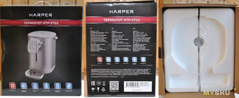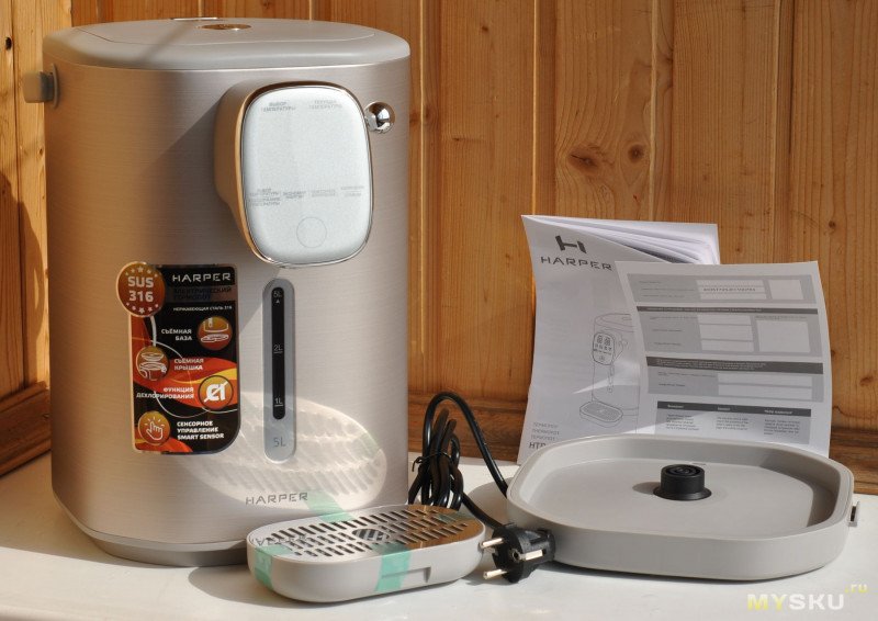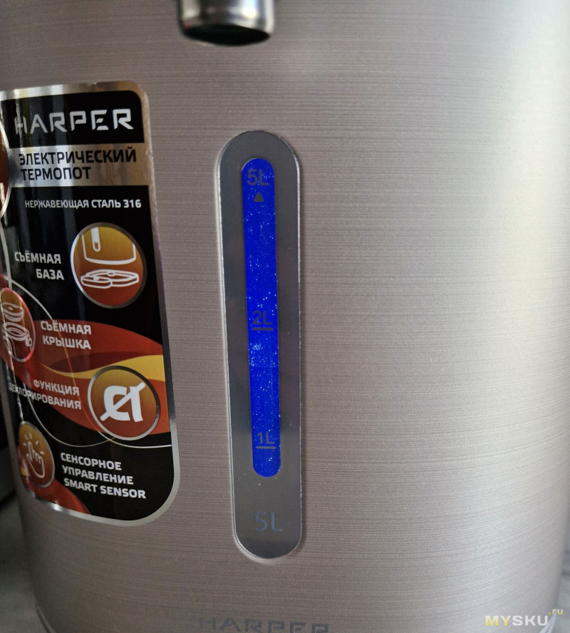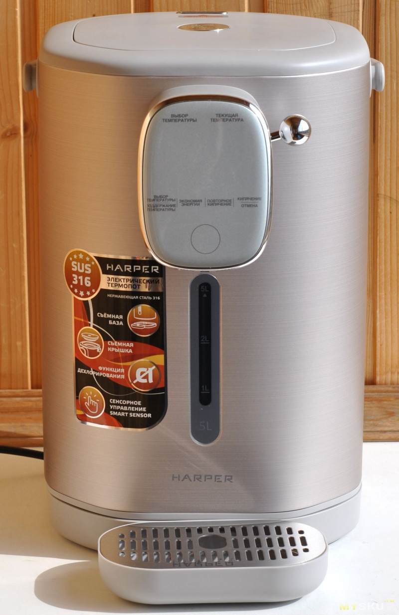 Надоело постоянно кипятить чайник в большой семье/офисе и нужен доступ к горячей воде в любое время. Пора посмотреть на термопот. Он обладает возможностями чайника и термоса, поддерживает заданную температуру и удобно управляется. Сегодня познакомимся с 5-ти литровым термопотом от бренда HARPER. Модель HTP-5T02 (вышла в этом году) с колбой из нержавеющей стали марки SUS316 оснащается сенсорным управлением, блокировкой от детей и режимом энергосбережения с датчиком освещенности. Чуть подробнее (с разборкой) ниже.