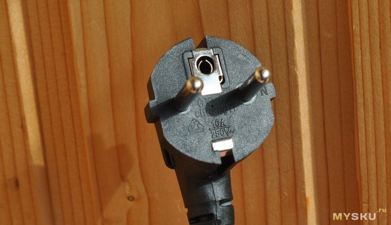 Шнура тут не жалели, длина 1,3 м, оканчивается угловой вилкой с заземлением: