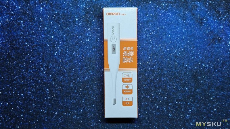 Поставляется термометр в небольшой коробочке из тонкого глянцевого картона, содержащей описание лишь на китайском языке.