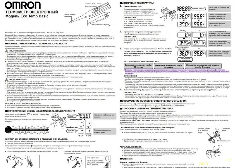 На RU версии сайта OMRON выложена русскоязычная инструкция к этому термометру.