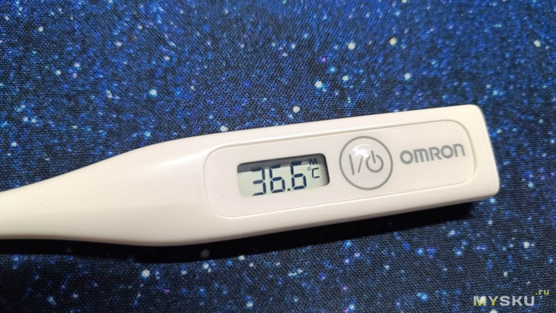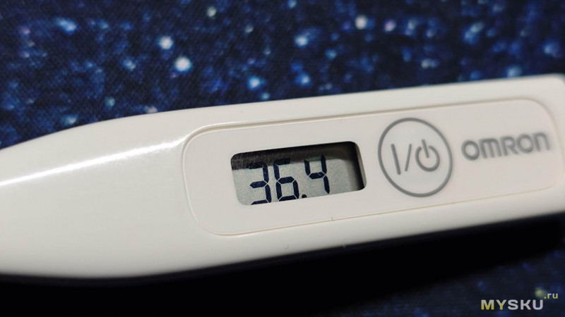 Я потом несколько раз повторял измерение и каждый раз время до звукового сигнала было разным — от 2 до 3,5 минут. Не знаю от чего это зависит, но результат измерения всегда было одинаков — 36,6 °C. Стабильность измерения стопроцентная.