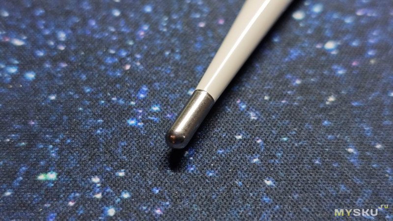 Корпус изготовлен из белого глянцевого пластика. Металлический лишь кончик, внутри которого находится температурный датчик.