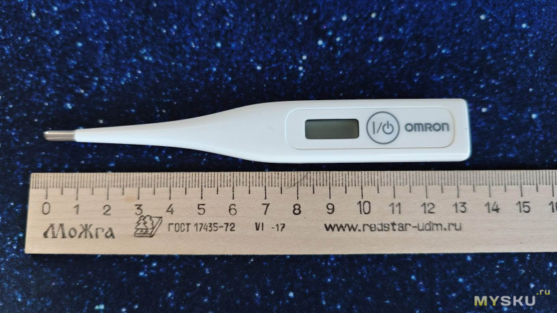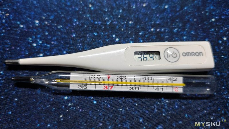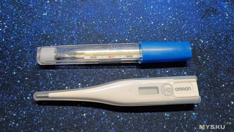 Проверять точность измерения термометра Omron MC-246 будем путём сравнения с ртутным медицинским термометром, купленным в аптеке.