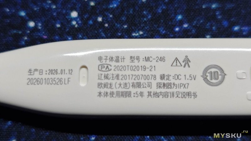 Комплект поставки состоит из термометра в прозрачном пластиковом футляре, пухлой инструкции и талона с печатью китайского ОТК.