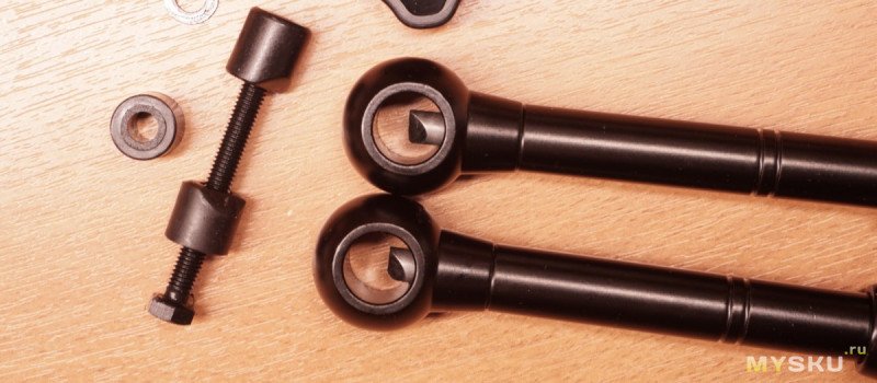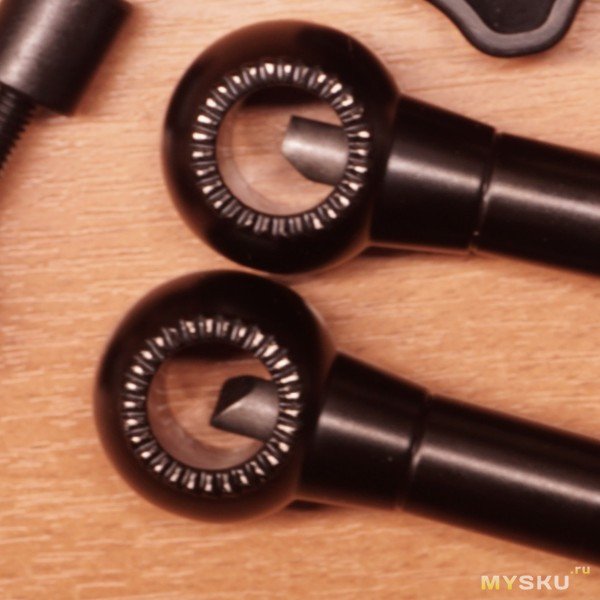 Исполнение в целом неплохое, однако, при разборке выпало пара длинных стружек, не убранных, похоже, после нарезания резьбы. Вроде ни на что особо это не влияет. Большинство силовых элементов — из металла. Трубки и крышки шаровых зажимов не примагничиваются и судя по весу — какой-то сплав аллюминия. Штыри-толкатели и шары с болтами из стали, хорошо примагничиваются.